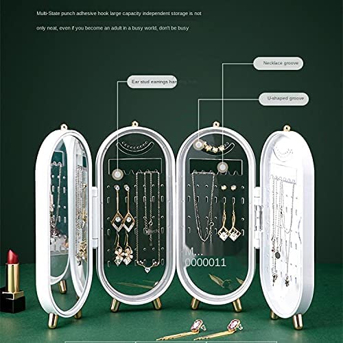 Spaceshoop - صندوق منظم للمجوهرات قابل للطي بمرآة لون ابيض ، مادة صناعية