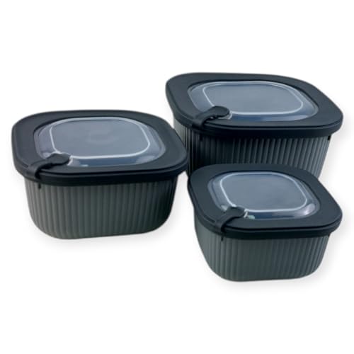 Generic - علبة تخزين الطعام من فولي لايف - 3 قطع - رمادي