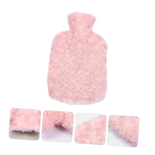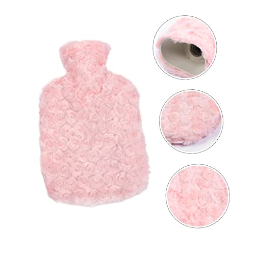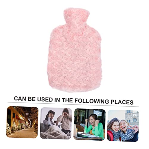 FOMIYES - فوميز. زجاجة مياه ساخنة من المطاط المخملي لتدفئة اليدين مع غطاء ناعم لزجاجة المياه الساخنة (بينك) اكياس ماء ساخن من بلاستيك PVC، شنطة حرارية سميكة محمولة