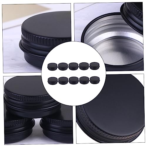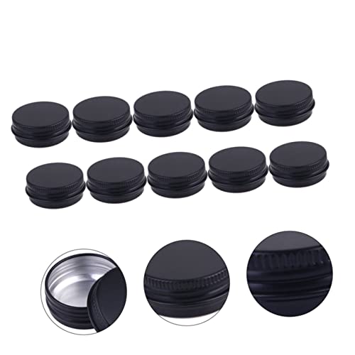 FOMIYES - فوميز. 10 قطع معبأة في صندوق الومنيوم اسود، برطمانات حلوى بلاستيكية شفافة، حاويات حلوى ومرطب الشفاه ومستحضرات التجميل للسفر، برطمانات معدنية لتخزين الطعام بلون اسود
