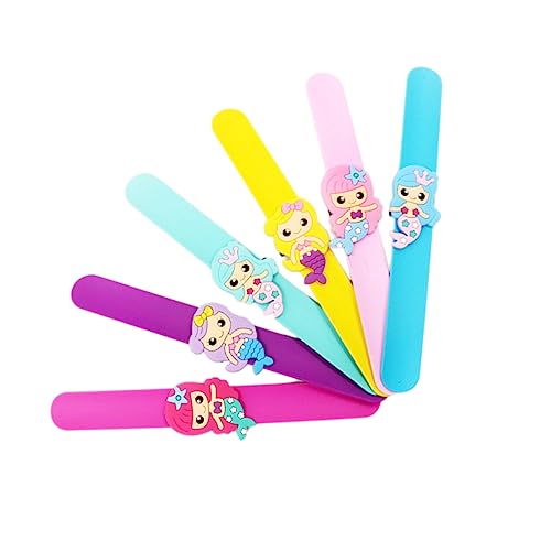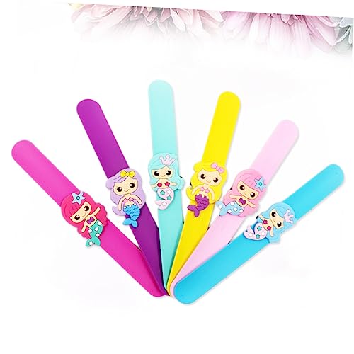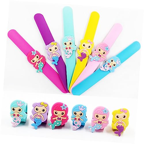 FOMIYES - مشبك شعر بتصميم حورية البحر، 6 قطع – أساور سيليكون وخاتم وسوار بنمط حورية البحر، زينة للحفلات ذات طابع البحر، سوار حورية البحر وعلامة مرجعية ودبابيس شعر كرتونية من فوميز