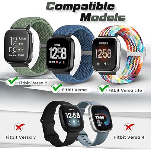 fashion mania - سوار رياضي من النايلون الناعم القابل للتعديل ومزود بمسامات للتهوية لساعة فيتبيت فيرسا 2/ فيتبيت فيرسا لايت/ فيتبيت فيرسا، عبوة من قطعتين