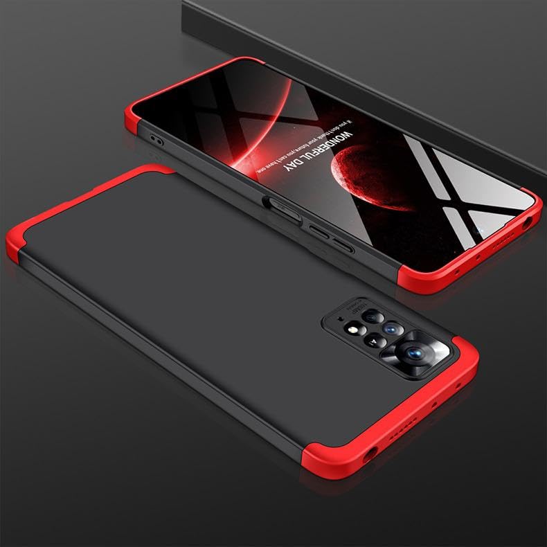 Generic - جراب موبايل متوافق مع ريدمي نوت 12 برو 4G ثلاثي المراحل من البولي كربونات بتغطية كاملة لموبايل + اسود واحمر