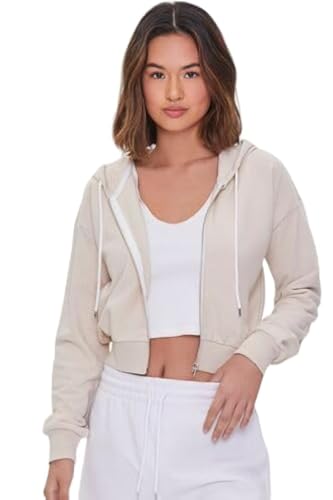 Forever 21 - سويت شيرت أساسي للنساء من فوريفر 21 بغطاء للرأس وسوستة مصنوع من صوف ناعم