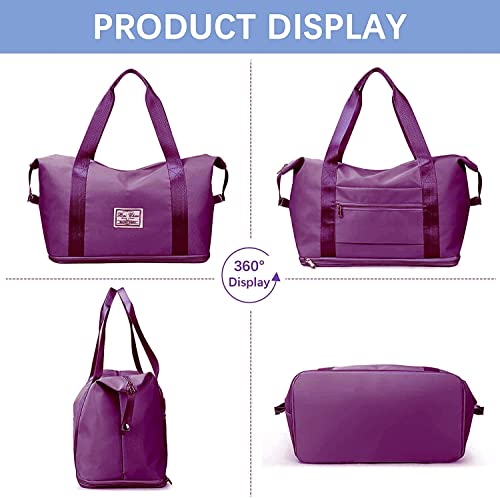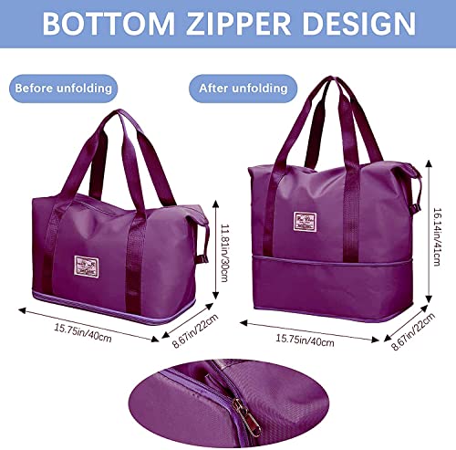Generic - شنطة دفل للسفر قابلة للطي ذات سعة كبيرة، شنطة سفر خفيفة الوزن ومقاومة للماء مع مساحة تخزين للحذاء 40 × 23 × 42 سم ، مارون، أرجواني، مادة صناعية