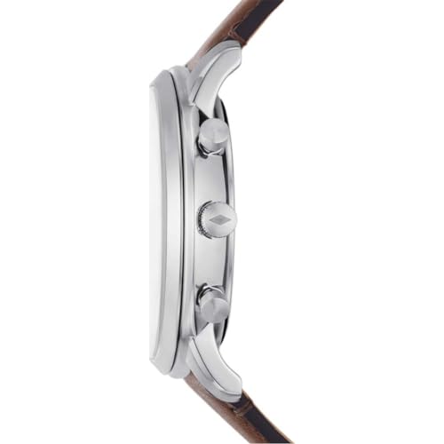 Fossil - ساعة نيوترا رجالي بحركة كرونوغراف وسوار من الفولاذ المقاوم للصدأ أو الجلد فوسيل لون بني وكريمي مقاس 44 ملم