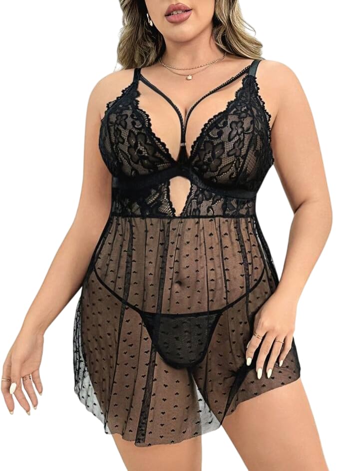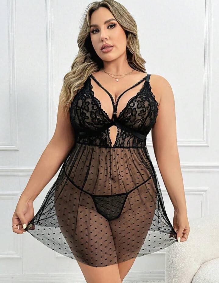 Generic - لانجيري سكسى لانجرى مثير بيج سايز بفتحات ساخنه من الامام والخلف لتكون اثارتك جذابه بؤنثتك بيبى دول قصير شفاف قميص نوم حريمى انيق من Four H كود 654