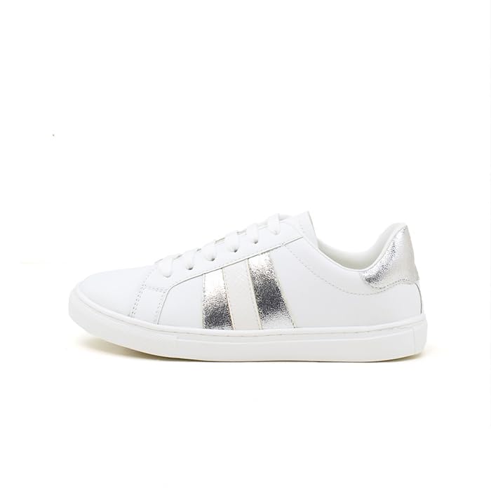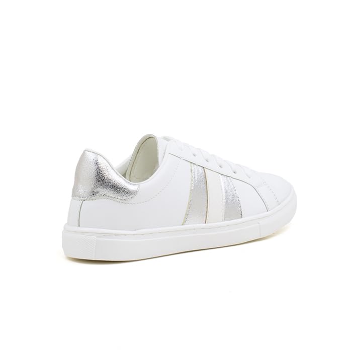Fourteen - فورتين -YT0303141742037 - حذاء رياضي كاجوال برباط وخطين للنساء-مختلط-ابيض-فضي-EU37، M