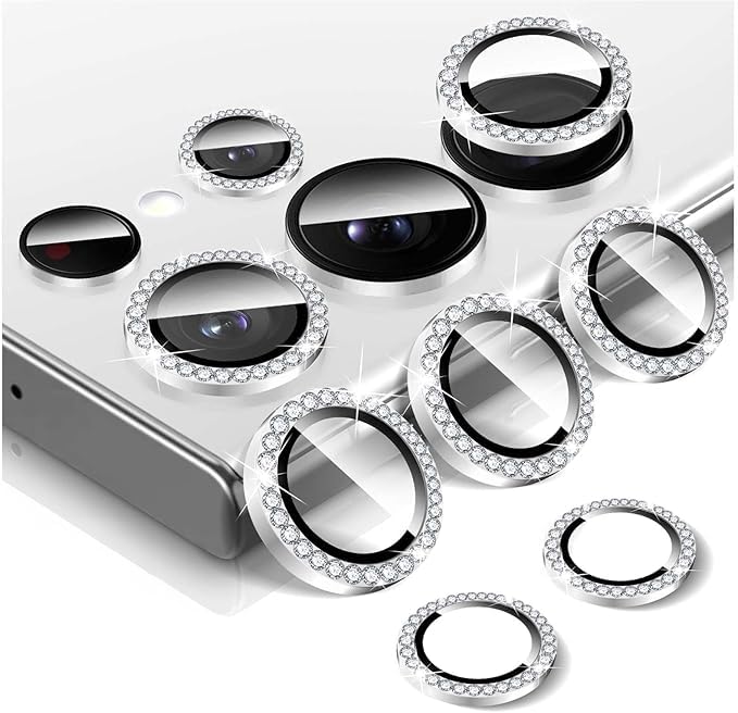 Generic - واقي عدسة كاميرا من الزجاج المقوى فردي بتصميم رفيع للغاية وحلقي مقاوم للخدش من الألومنيوم متوافقة مع الجراب لموبايل سامسونج جالاكسي S23 الترا من فوكس اي جي (لون فضي ماسي)