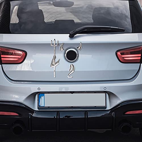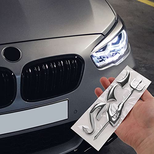 Franchity - ملصق سيارة ثلاثي الأبعاد من الكروم بلون فضي من فرانشيتي، شعار الشيطان