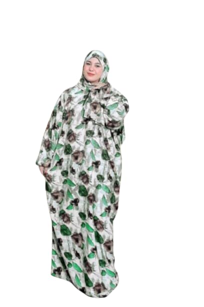Generic - إسدال صلاة للجنسين، مصنوع من القطن، باللون الأبيض والأخضر، مقاس حر، بتصميم تقليدي