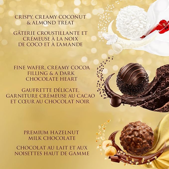 Generic - مجموعة متنوعة من الشوكولاتة الفريرو روشية وجوز الهند، علبة هدايا من 15 قطعة، 156 جرام