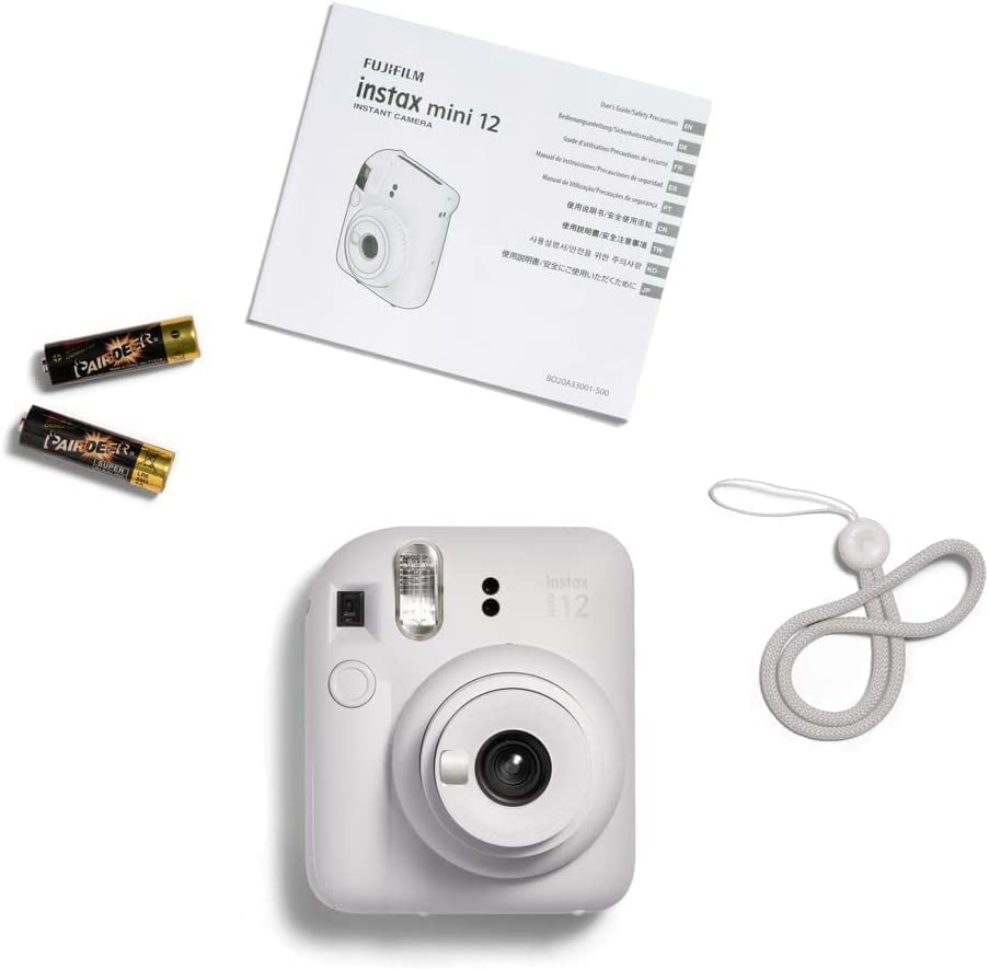 Fujifilm - كاميرا انستاكس ميني 12 للتصوير الفوري من فوجي فيلم - بلون كلاي وايت + عبوة من قطعة واحدة