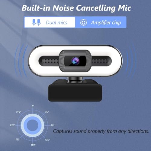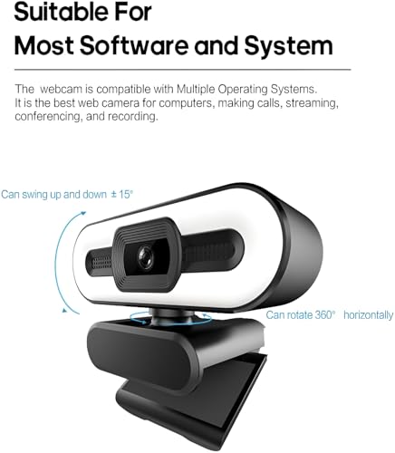 Generic - كاميرا ويب FHD بدقة 1080 بيكسل، اتصال USB، ميكروفون مدمج، إضاءة بثلاثة مستويات، تركيب متعدد الاستخدامات