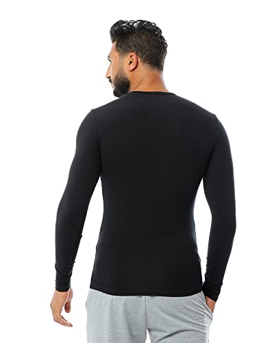 Dice - قميص داخلي باكمام طويلة ورقبة دائرية لون اسود, أسود, L، من دايس، للرجال