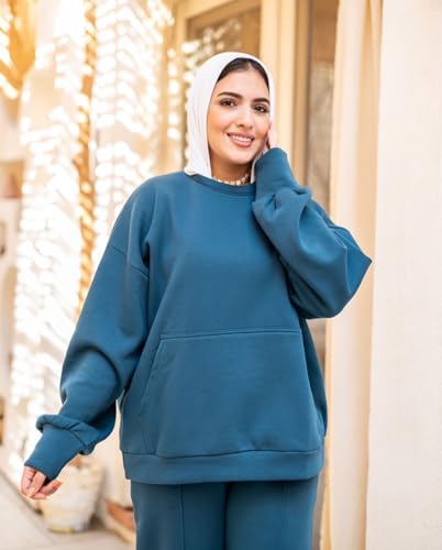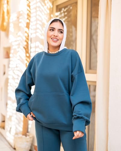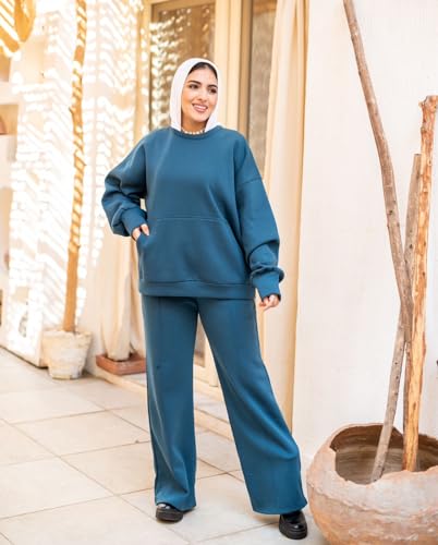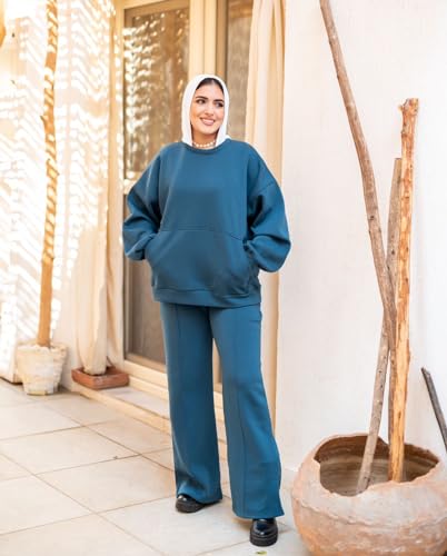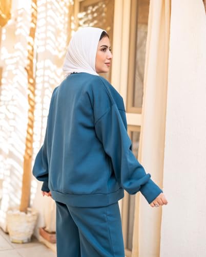 Pinky - طقم شتوي كامل للنساء (سويت شيرت كبير الحجم وبنطلون بأرجل واسعة) لون ريترو بلو