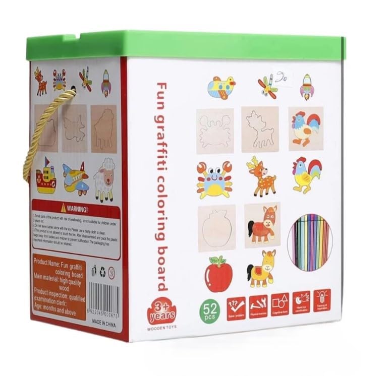 - 🎨 52 كارت خشبي مفرغ برسومات مختلفة لتسهيل التعلم والإبداع.