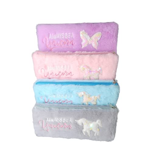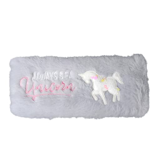 Generic - مقلمة فرو رمادي بتصميم يونيكورن لامع نايلون بوليستر بولي بروبيلين PP كربونات أكريلونيتريل بوتادين ستايرين ABS