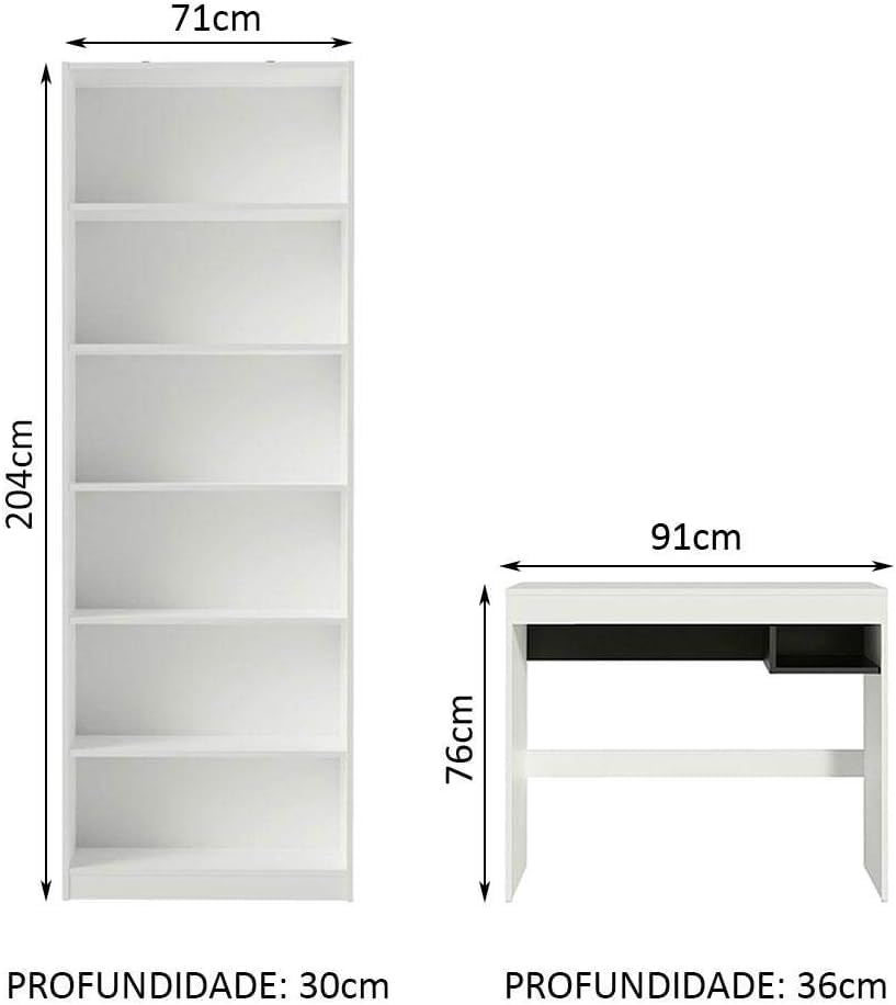 FurniFlex - طقم مكتب روبي مع مكتبة 6908 من فورني فليكس، أبيض