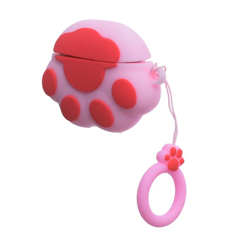 G-POWER - جراب حماية ثلاثي الأبعاد من السيليكون المتين بتصميم قدم قطة لطيفة مقاوم للصدمات والخدوش وحامل أصابع يناسب سماعات ايربودز 4 من جي باور، وردي وفوشيا