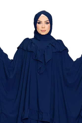 GAMAL SONS FOR ABAYA - عباية عدنا الاسلامية من جمال صنز، قطعتين (بلوزة مكشكشة وتنورة) كريب رويال موديل 9080، مقاس واحد للارتداء حتى 150 كيلو (كحلي)