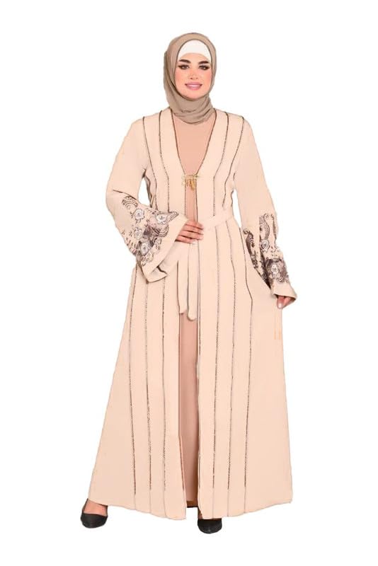 GAMAL SONS FOR ABAYA - عباية خليجية بترولي مطرزة بأكمام واسعة، تصميم أنيق مع حزام خصر للنساء GAMAL SONS FOR ABAYA GS-118-32418-Parent