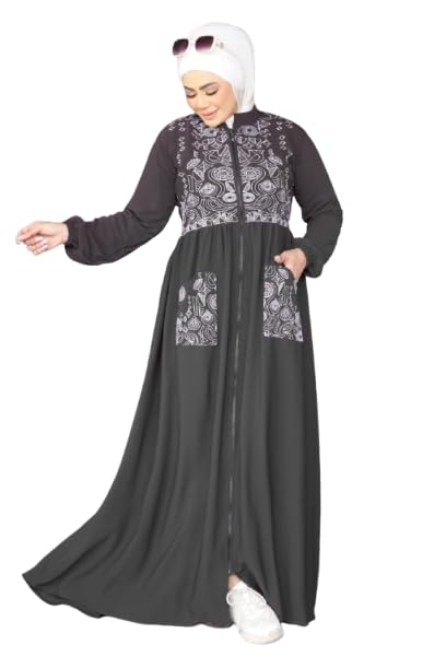 GAMAL SONS FOR ABAYA - عبايه خروج مطرزة كريب فيرونا بسحاب موديل 8120 للنساء من GAMAL SONS FOR ABAYA