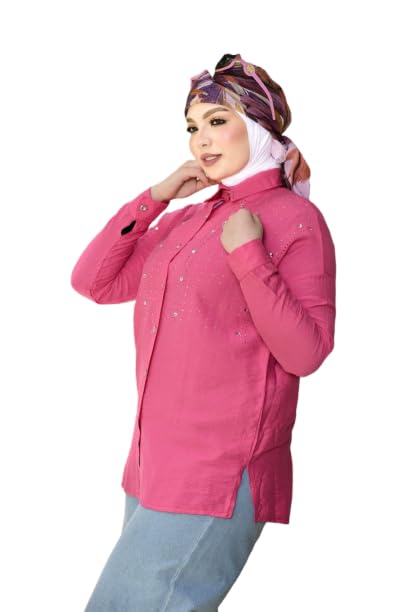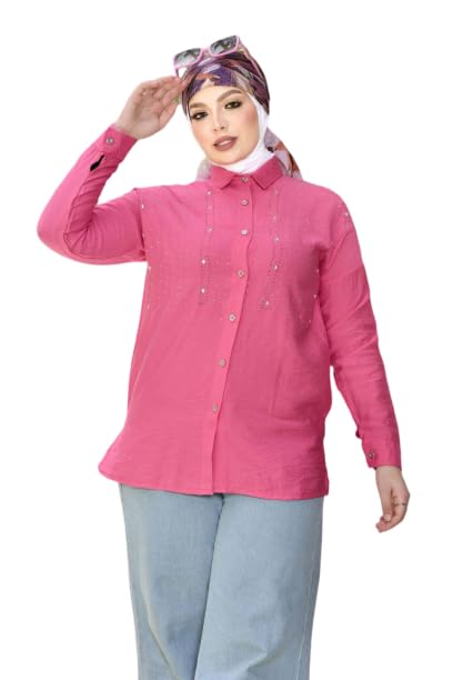 GAMAL SONS FOR ABAYA - قميص حريمي بستايل كاجوال وأزرار أمامية مع تطريز خفيف GAMAL SONS FOR ABAYA GS-70-42451-Parent