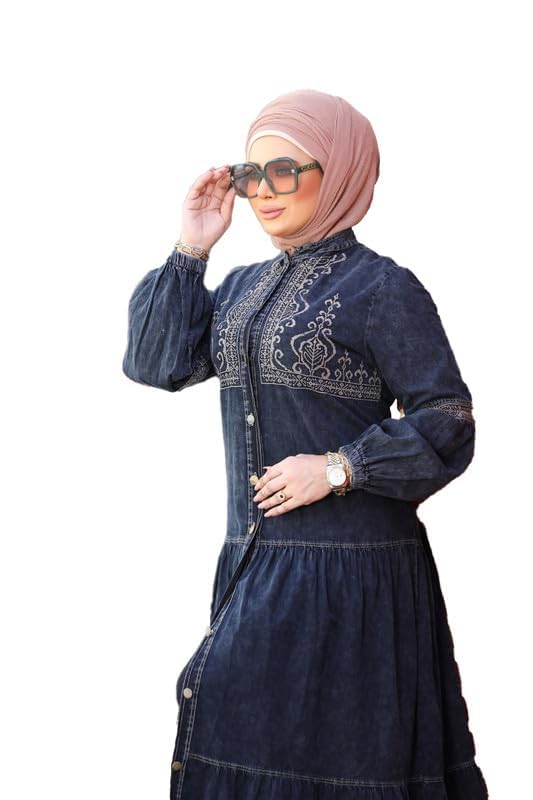 GAMAL SONS FOR ABAYA - عباية نسائي طويل جينز بتطريز وأزرار GAMAL SONS FOR ABAYA GS-4090-32192-Parent