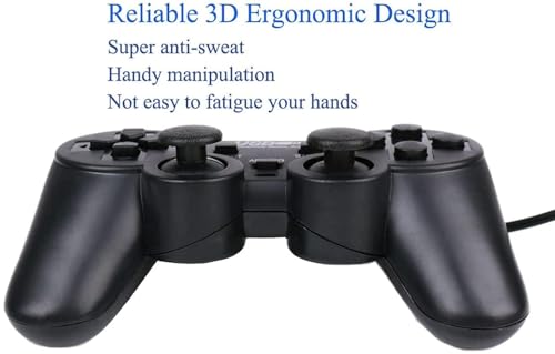 Generic - يد تحكم ألعاب فيديو للكمبيوتر واللابتوب، توصيل USB مزدوج، متوافقة مع أجهزة PC، باللون الأسود