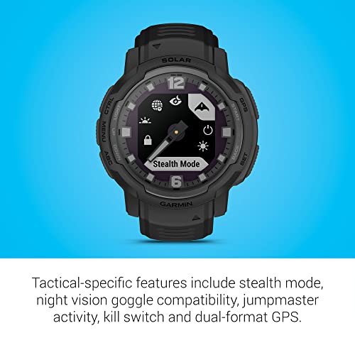 Garmin - جارمين ساعة انستينكت كروس اوفر سولار - اصدار تكتيكي، ساعة ذكية هجينة متينة مع قدرات شحن بالطاقة الشمسية، ميزات تكتيكية محددة، عقارب انالوج وشاشة رقمية، اسود