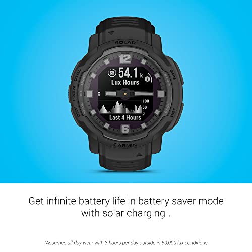 - عمر البطارية مع الشحن الشمسي: عمر بطارية لا حصر له في موفر البطارية (يفترض أن تدوم طوال اليوم مع 3 ساعات في اليوم في الخارج في ظروف 50000 لوكس)؛ عمر البطارية يصل إلى 70 يومًا في وضع الساعة الذكية (يفترض الاستخدام طوال اليوم مع 3 ساعات في اليوم في الخارج في حالة 50000 لوكس)؛ ما يصل إلى 31 ساعة في وضع تحديد المواقع (يفترض الاستخدام المستمر لفترة كاملة في 50000 ظروف لوكس)