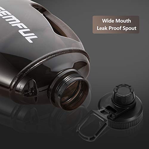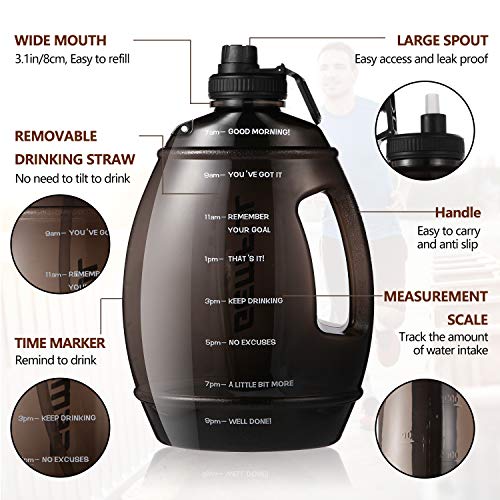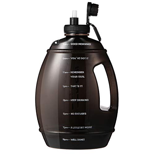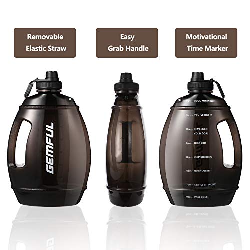 GEMFUL - زجاجة مياه بسعة جالون مع ماصة تحفيزية خالية من البيسفينول ايه علامات زمنية سعة 128 اونصة قابلة لاعادة الاستخدام مقبض وقياس