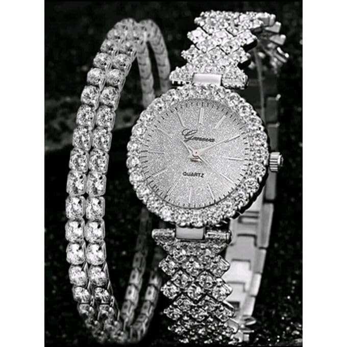Generic - ساعة من غير أصلي للنساء، مزينة بأحجار الراين، عرض تناظري