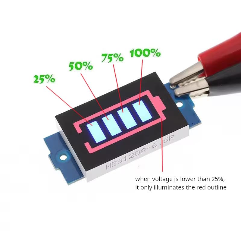 • التركيب: ببساطة وصل الأطراف الموجبة والسلبية للوحة المؤشر بالجهاز، وسيعرض الأنبوب الرقمي سعة البطارية في الوقت الفعلي