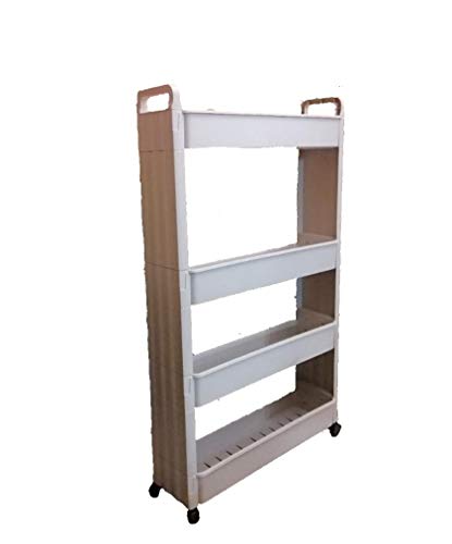 Spaceshoop - رف مطبخ بلاستيكي متعدد الأغراض من 4 طبقات مع عجلات قابلة للإزالة - بيج