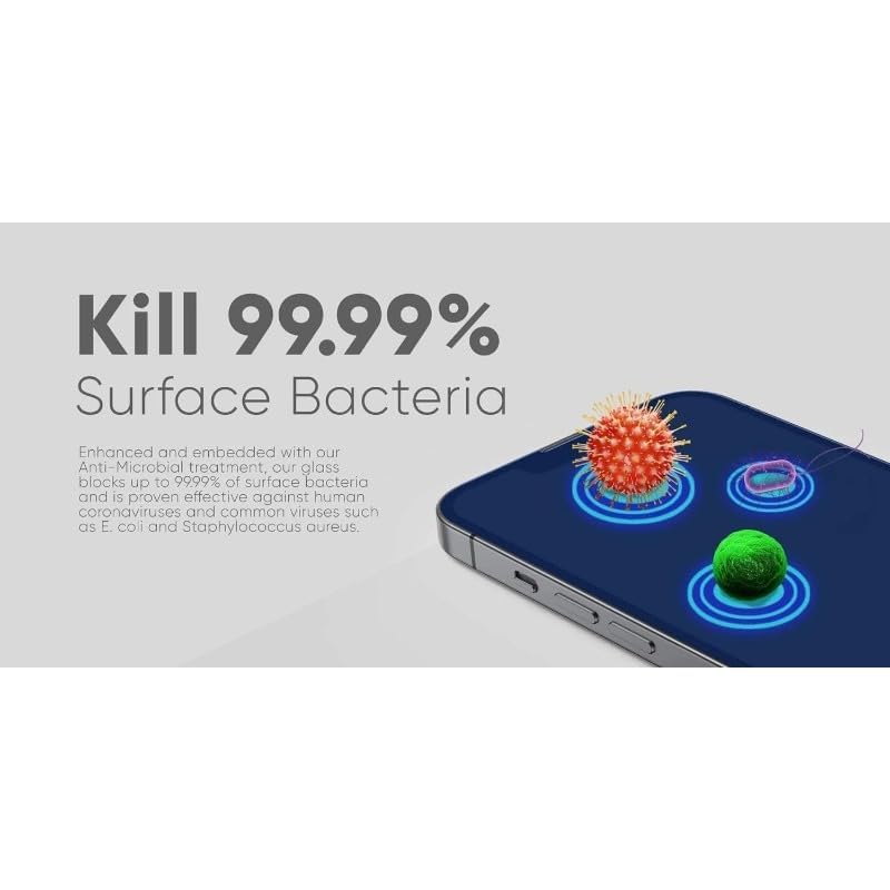 Generic - شاشة حماية زجاج مضادة للبكتيريا لموبايل ايفون 13 برو، شفاف