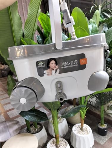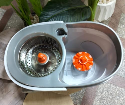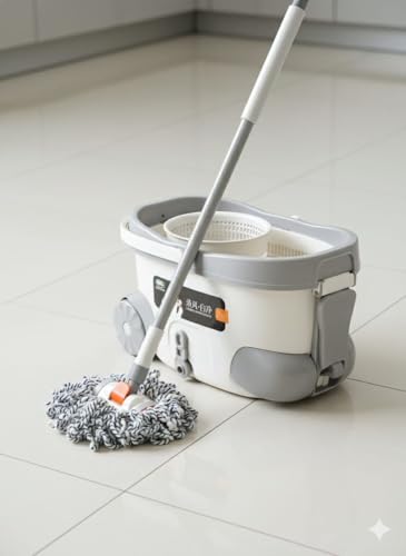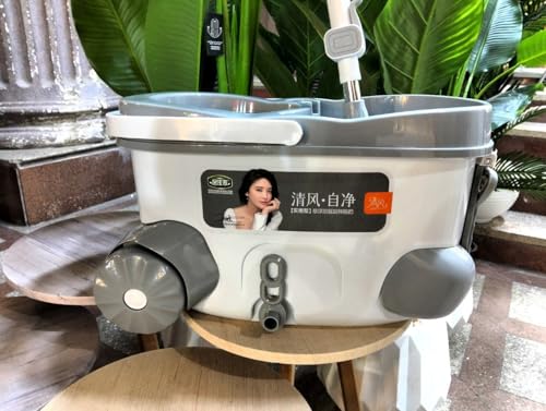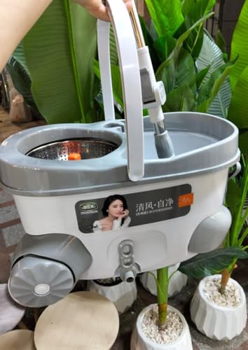 Generic - مجموعة جردل ومساحة موب دوارة أوتوماتيكية، بولة مصنوعة من الفولاذ المقاوم للصدأ مع نظام عصر ذاتي، أبيض/رمادي