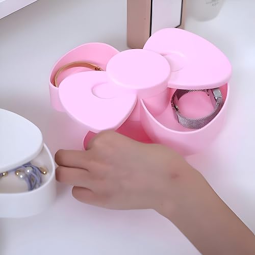 Generic - صندوق مجوهرات جميل يدور 360 درجة بتصميم فيونكة وردية للبنات، مثالي للاحتفال بأعياد الميلاد وعيد الأم، حل تخزين عالي الجودة، توصية هدية أنيقة، أكريلونيتريل بوتادين ستايرين، متعدد