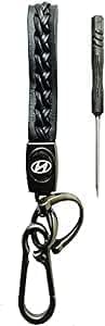 Generic - سلسلة مفاتيح سيارة من الجلد المضفر - متوافقة مع شعار هيونداي - أسود