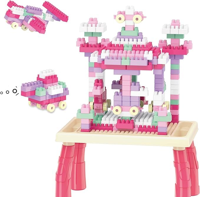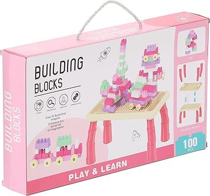 Generic - جيني مجموعة مكعبات بناء مع طاولة نشاط - 100 قطعة - بينك - للاطفال