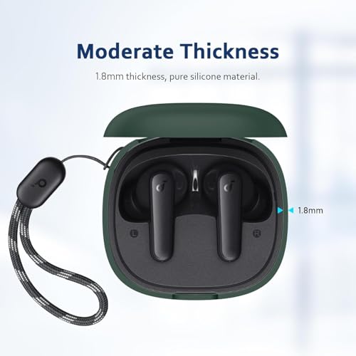 Generic - جراب سيليكون مقاوم للغبار مع سلسلة مفاتيح لسماعات ايربودز انكر موديل R50i، P25i، P20i (لون أحمر)