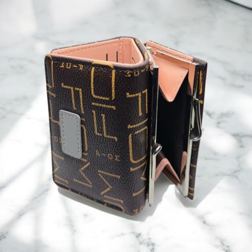 Generic - محفظة نسائية من الجلد الصناعي بتصميم كاجوال زهري، لون بني شوكولاته، مقاومة للماء مع نافذة للهوية و 7 فتحات للبطاقات