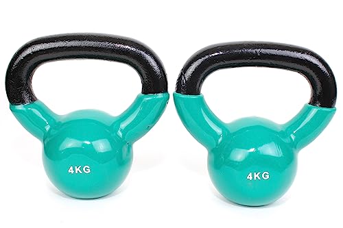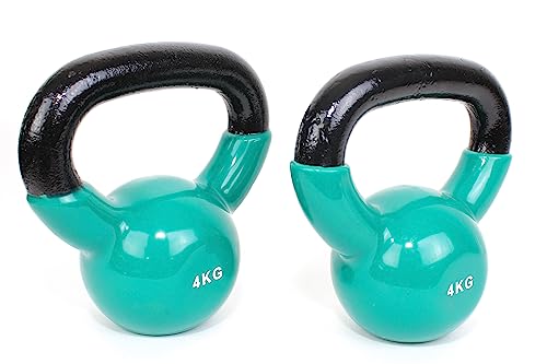 Generic - كرة أوزان كيتل بيل مطلية بالفينيل من الحديد المصبوب لتمارين الجسم بالكامل وتمارين القوة ورفع الأثقال وتدريبات الجذع - قطعتين - لون تركواز - وزن 4 كجم
