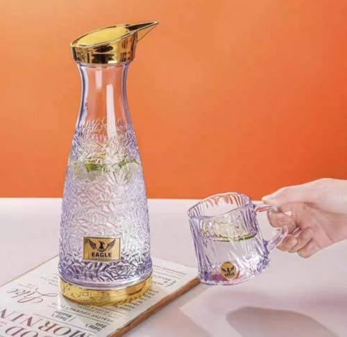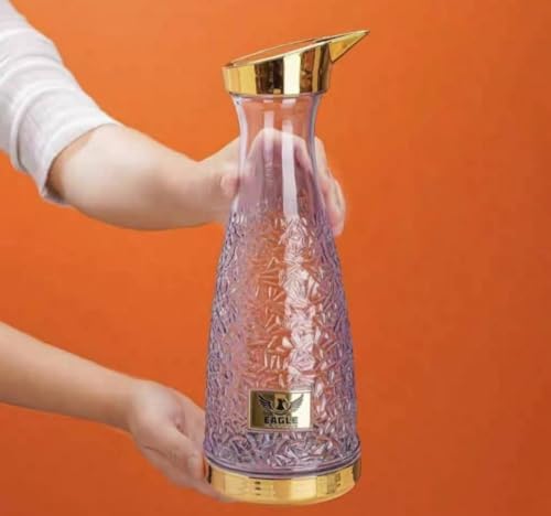 - هيكل من الزجاج الفاخر: تتميز زجاجة المياه ايجل بزجاج شفاف عالي الجودة مع تصميم أنيق بنمط كريستال مزخرف يضيف الرقي إلى طاولة الطعام أو الثلاجة.