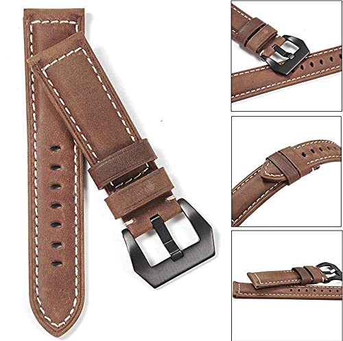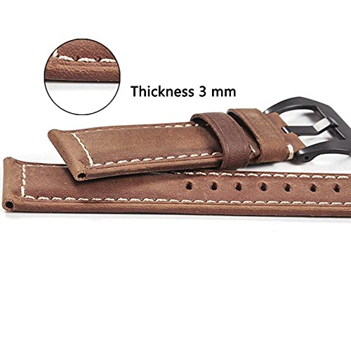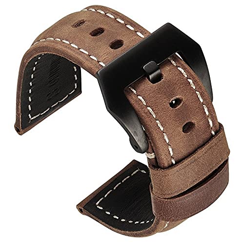 Smart Stuff - سوار - اوستيك يد مصنوع يدويًا من الجلد مع مشبك أسود الفولاذ المقاوم للصدأ لساعة سامسونج جالاكسي واتش ٣ - ٤٦ ملم- هواوي GT2 - جير اس - فوسيل - 22 ملي - بني، سمارت ستف، للجنسين