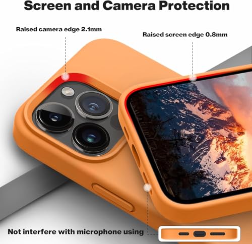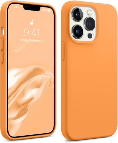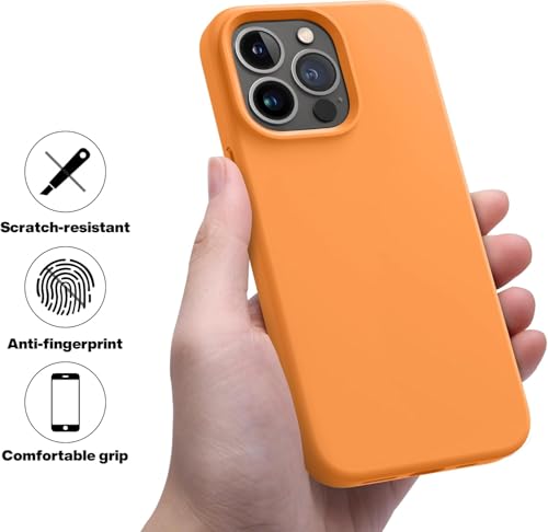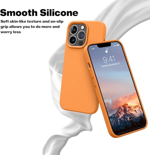 Generic - جراب حماية خلفي متوافق مع موبايل آيفون 13 برو ماكس، من السيليكون السائل، مبطن من الداخل (لون برتقالي)