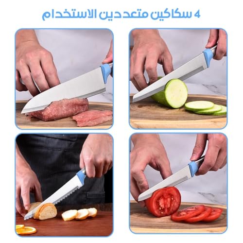- تتميز السكاكين بأدواتها المصنوعة من الفولاذ المقاوم للصدأ لتوفير متانة وقوة عالية.
