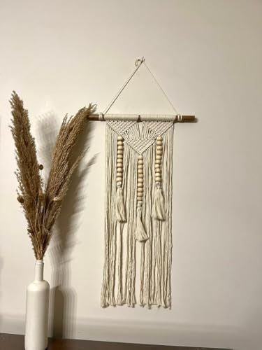 Generic - مكرمية للتعليق على الحائط، 45 سم، نسيج بوهو منسوج بالخرز، لون كريمي