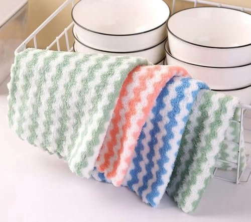 Generic - جيني مناشف تنظيف من الفرو الصناعي من المايكروفايبر، نمط شيفرون بينك وابيض، 25 × 25 سم، 10 قطع